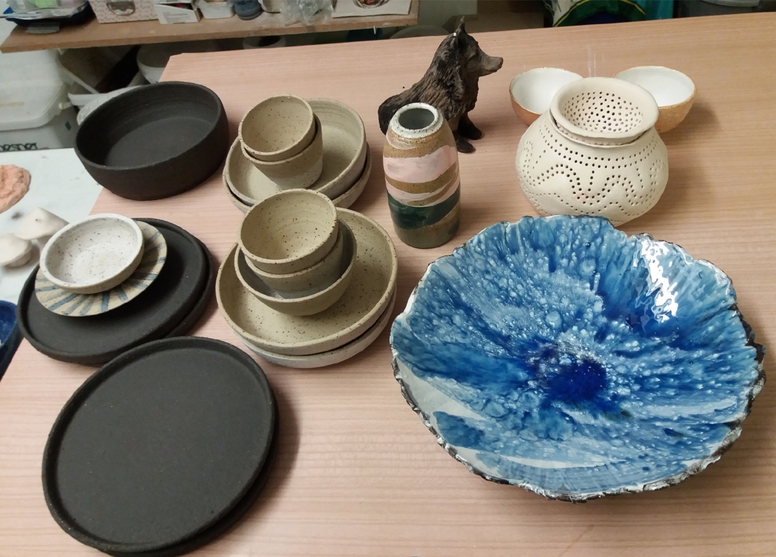 Ob Aufbautöpfern oder Drehen an der Töpferscheibe. Jeder kann hier kreativ mit Ton umgehen.